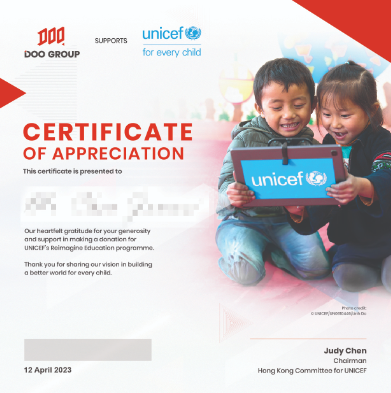 - الحد الأدنى لمبلغ التبرع للعميل هو 100 قيمة حلم. إذا تجاوز التبرع التراكمي للعميل 3000 قيمة حلم، فسوف يحصل على شهادة تقدير رسمية صادرة عن منظمة الأمم المتحدة للطفولة (اليونيسف).