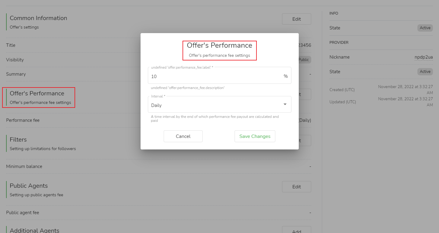 - نسبة رسوم الأداء:قم بتعبئة نسبة المشاركة في الربح (حتى 80) المضمنة في شروط النسخ.