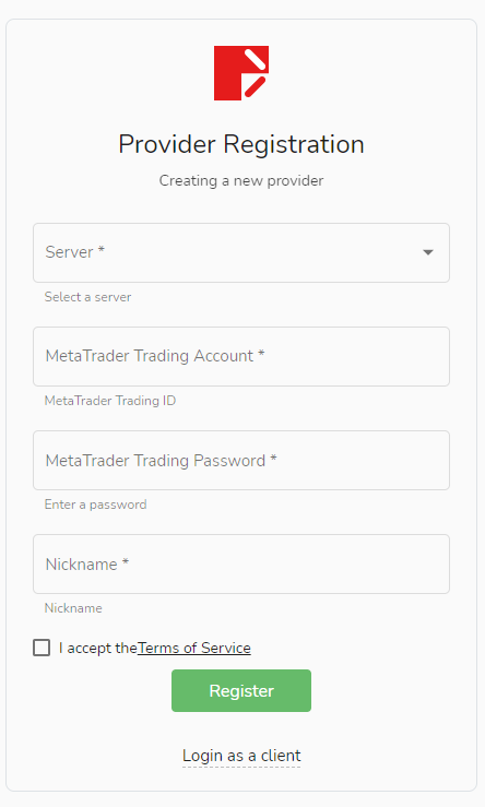 Las fuentes de señales pueden registrar una cuenta activa para compartir estrategias comerciales siguiendo los pasos a continuación.