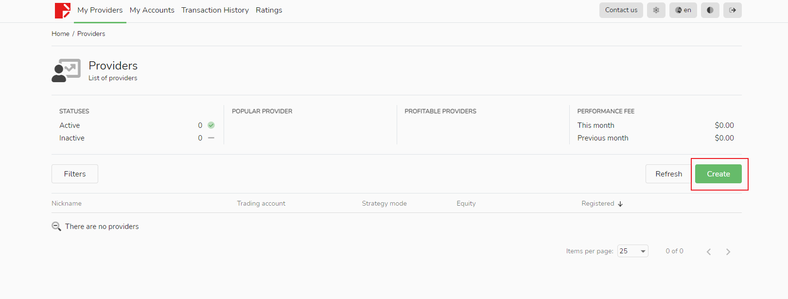 En la página [Mi cuenta] de la fuente de la señal, puede agregar una nueva cuenta comercial haciendo clic en el botón verde [Crear]. Sin embargo, esta cuenta no se puede utilizar para iniciar sesión y solo se puede seleccionar como fuente de señal, seguidor o configurada para recibir tarifas de rendimiento.