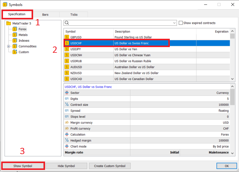 3.4 Cómo ver cotizaciones de mercado en MT5 y aumentar los parámetros de visualización de la "columna" de cotizaciones de mercado