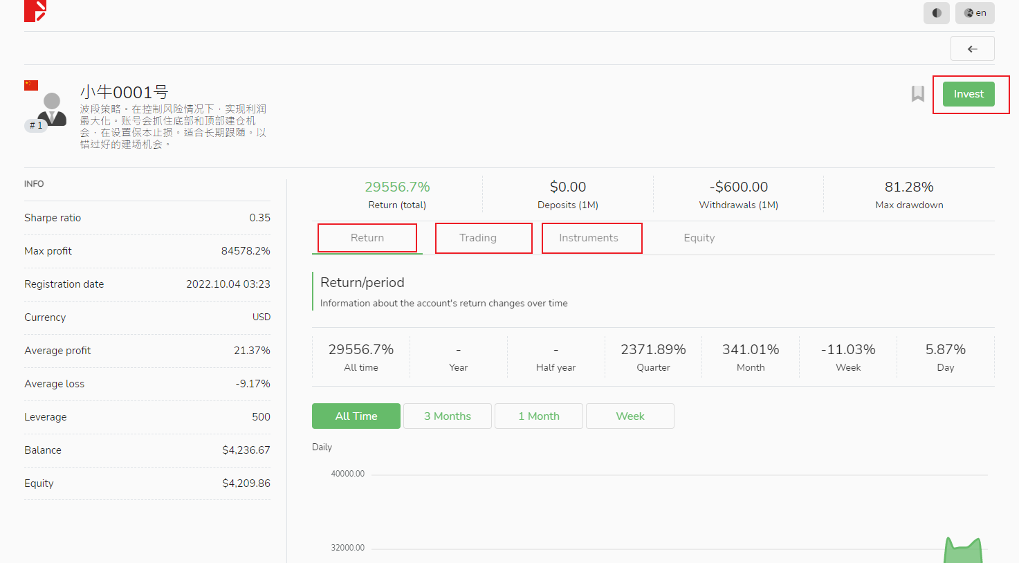 신호 소스를 따르기로 결정한 경우 페이지 오른쪽 상단의 [투자]를 클릭하고 지정된 단계를 따를 수 있습니다.