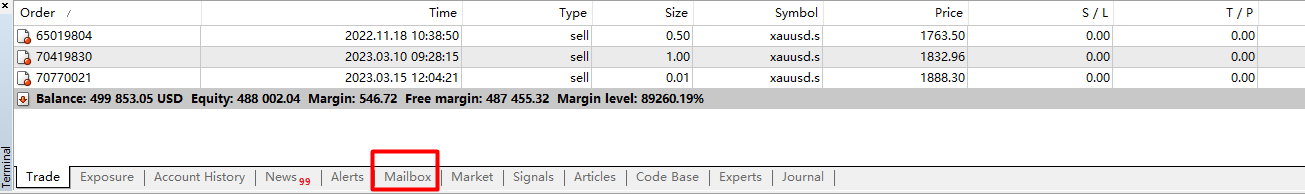 알림을 보려면 MT4에 로그인하고 하단 메뉴 표시줄에서 "이메일"을 클릭하십시오.
