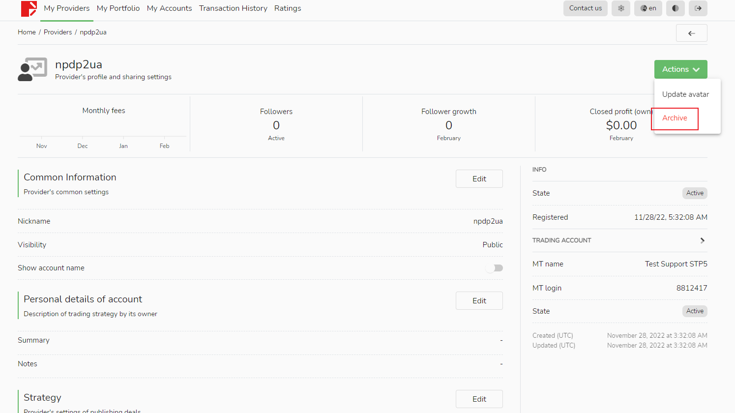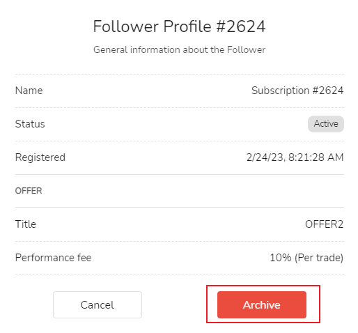 A fonte do sinal pode proibir os seguidores de continuarem a seguir suas próprias operações de negociação na lista [Seguidores].