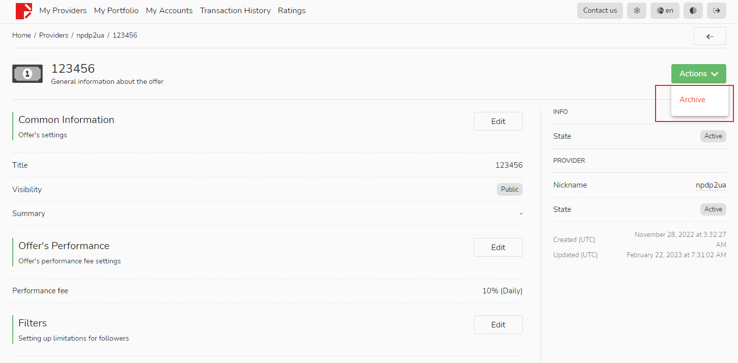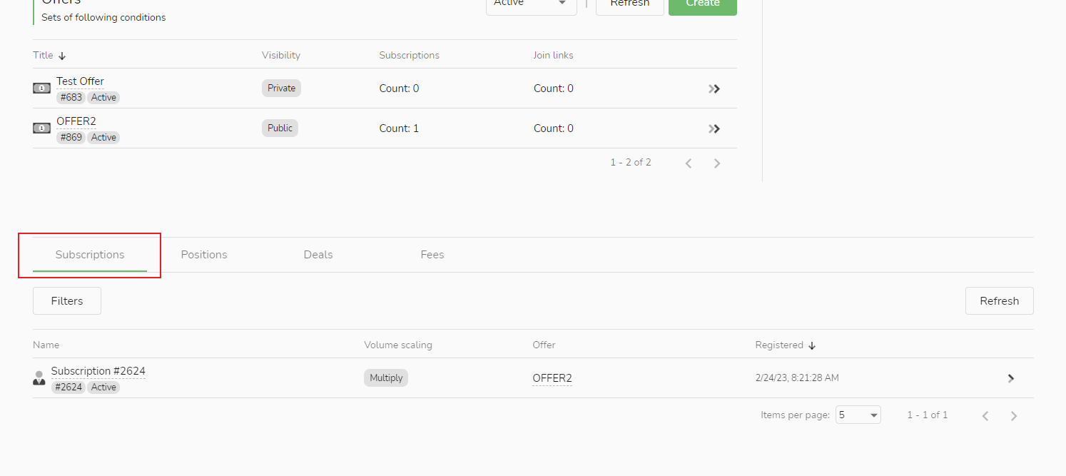 Na parte inferior da página de informações da fonte de sinal e alocação de pedidos, você pode visualizar a lista de seguidores e pode optar por excluir o seguidor clicando na seta no lado direito do seguidor.