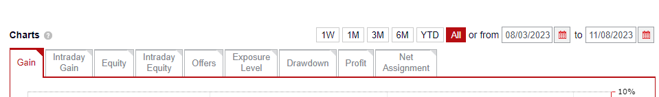 c. 如果用户希望创建报价或管理大师账户的设置,请点击活跃账户列表中所需的大师账户以获取更多详细信息。系统将生成图表以显示所选大师账户的收益、当日收益、权益、报价、敞口水平、最大回撤、利润和净分配。