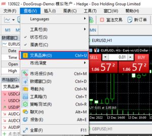 2. 在菜單欄中選擇【查看】後點擊【交易品種】: