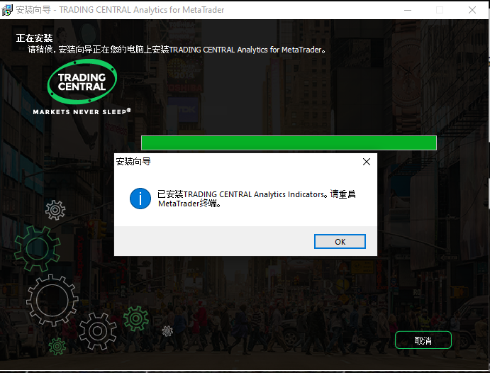 5. 現在您需要重啟MT4 客戶端,然後開始設置Trading Central 的指標。