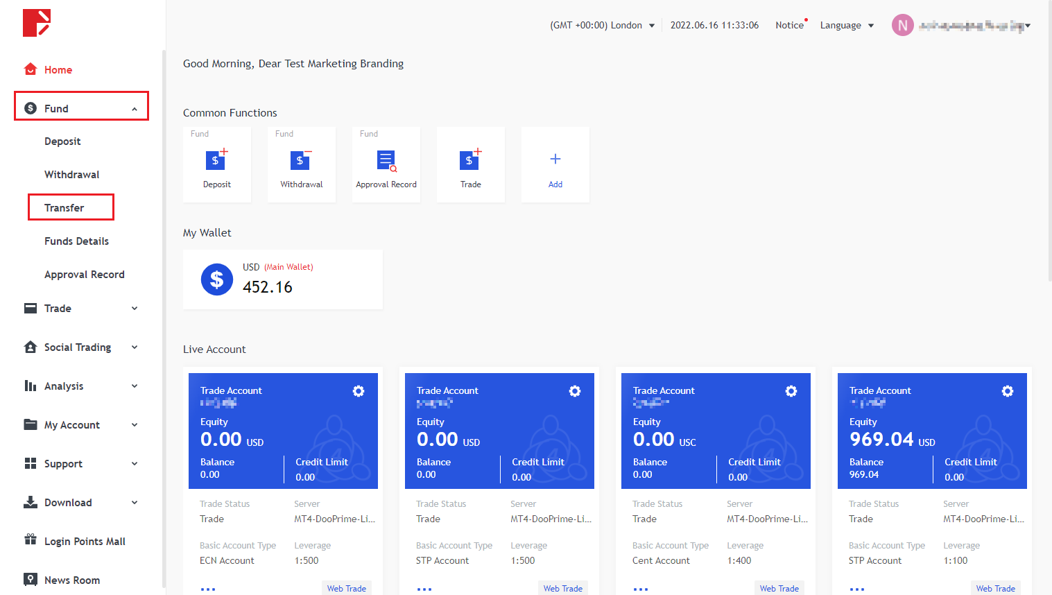 Làm thế nào để chuyển tiền giữa các tài khoản giao dịch?
