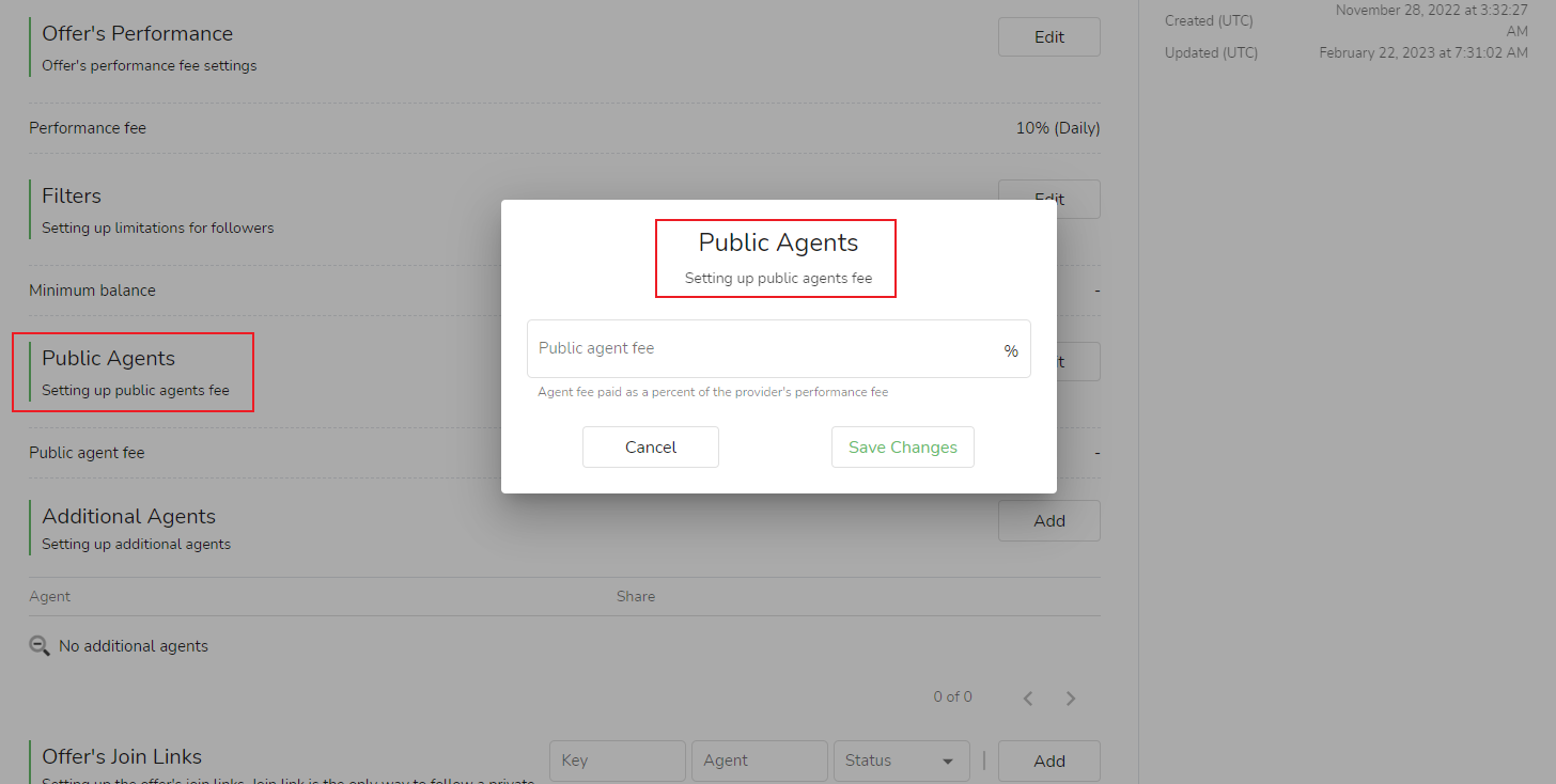 Người giới thiệu chịu trách nhiệm quảng bá nguồn tín hiệu và thu hút người theo dõi đăng ký. Nguồn tín hiệu cần trả phí khuyến mãi cho người quảng bá đã thu hút thành công người theo dõi đăng ký. Phí khuyến mãi giới thiệu phụ thuộc trực tiếp vào hiệu suất đăng ký. Nguồn tín hiệu có thể đặt phí quảng cáo giới thiệu dưới dạng phần trăm cho một điều kiện sao chép và sau khi được đặt, nó sẽ áp dụng cho tất cả các nhà quảng cáo.