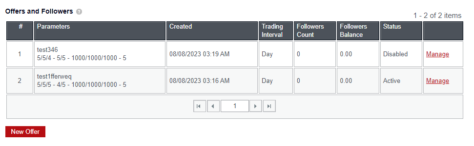 b. Nhấp vào "Ưu đãi mới". Bảng Ưu đãi và Người theo dõi hiển thị thông tin về tất cả ưu đãi, trạng thái của chúng, số lượng người theo dõi và tổng "số dư người theo dõi" cho mỗi ưu đãi.